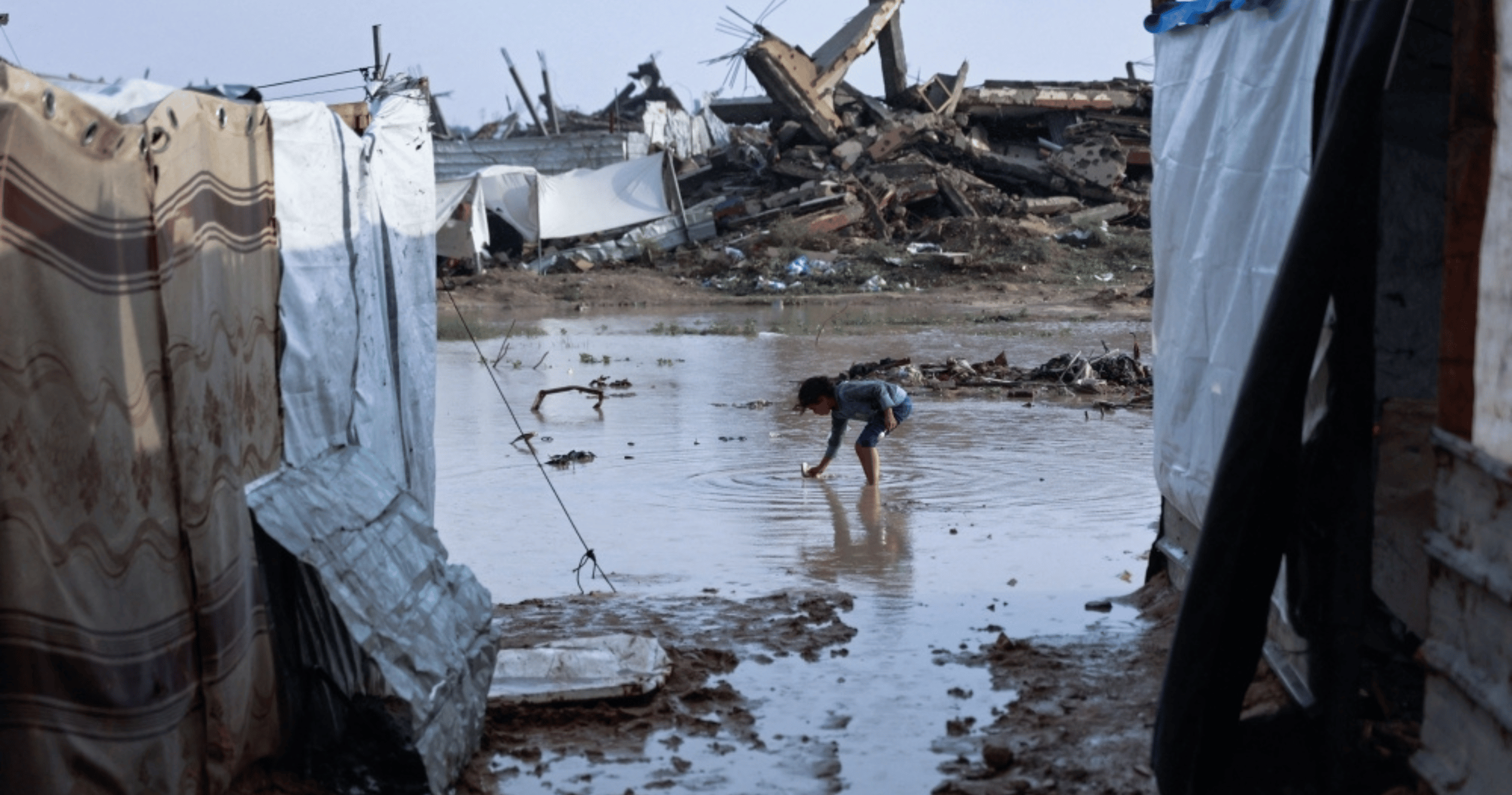 Storm Byron’s heavy rains have worsened conditions for thousands displaced by years of conflict. Two children died in Gaza City and one in Khan Yunis due to cold exposure, while six people were killed when a house collapsed and four more died in separate building collapses.